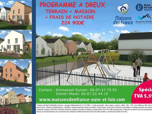 229 500 € 2 495 €/m²Terrain avec maison neuve à vendre5 pièces·4 chambres·92 m²·204 m² de terrainCentre Ville, Dreux (28100)