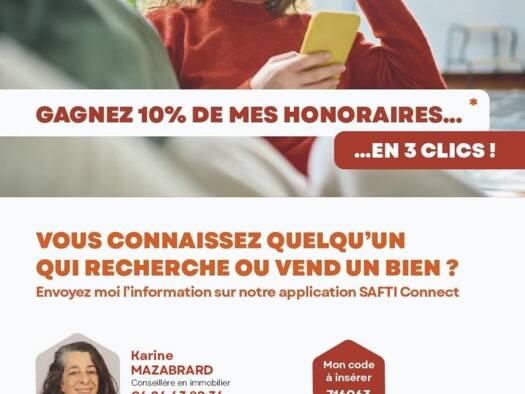 Faites confiance à un réseau puissant pour votre projet immobilier. Les avantages SAFTI : - + 6500 conseillers en France et à l’international - Le réseau N°1 en notoriété* - Des outils performants et innovants - Une communication massive Nos conseillers immobiliers partout en France seront vos interlocuteurs privilégiés pour un suivi personnalisé et de qualité tout au long de votre projet. SAFTI, la vie vous réussit. * Parmi les réseaux de mandataires immobiliers selon sondage IFOP